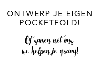Het ontwerpen van een pocketfold doe je natuurlijk niet dagelijks. Dus vraag gerust onze hulp. Daar zijn we voor. Mail ons gerust jullie wensen!